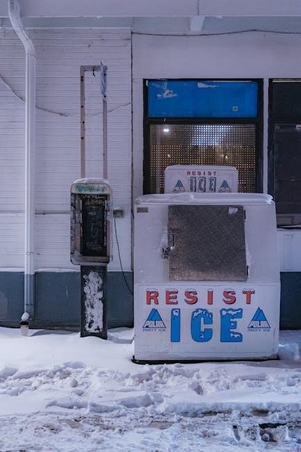 Detailed diagrams and exploded views aid in identifying parts and understanding their function. The PDF documents also stress safety precautions, emphasizing the importance of disconnecting power before performing any maintenance. Proper use of these manuals ensures efficient repairs, adherence to safety standards, and minimizes diagnostic time, ultimately restoring optimal ice production.